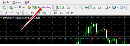 Nhấn chọn nút “Autotrading” được tìm thấy trên nền tảng và kích hoạt nó cho giao dịch trực tiếp. Nó sẽ hiển thị một màu xanh lá cây.