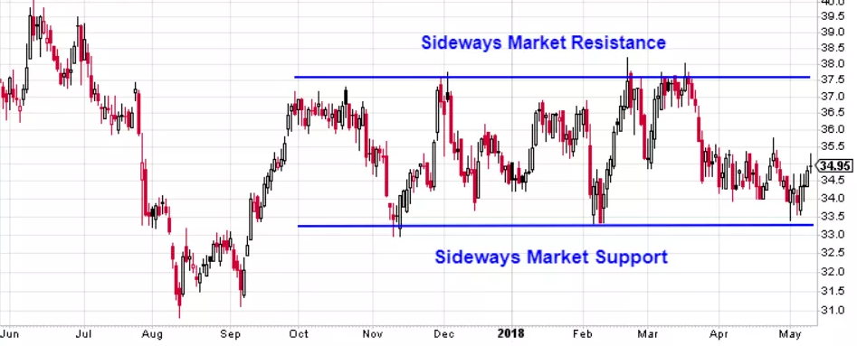 Để xác định một thị trường Sideway đi ngang, trước tiên bạn phải tìm ra các mức hỗ trợ và kháng cự.