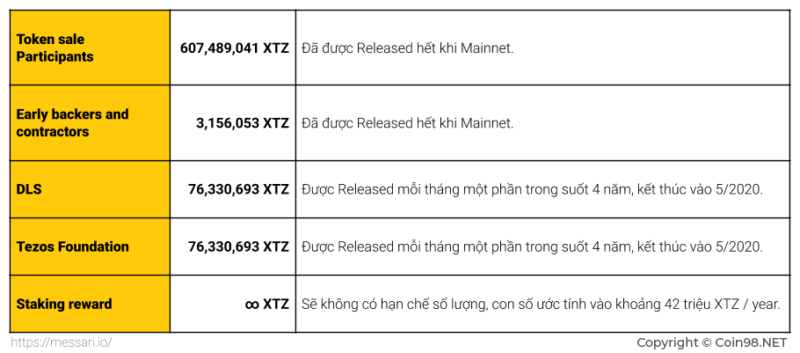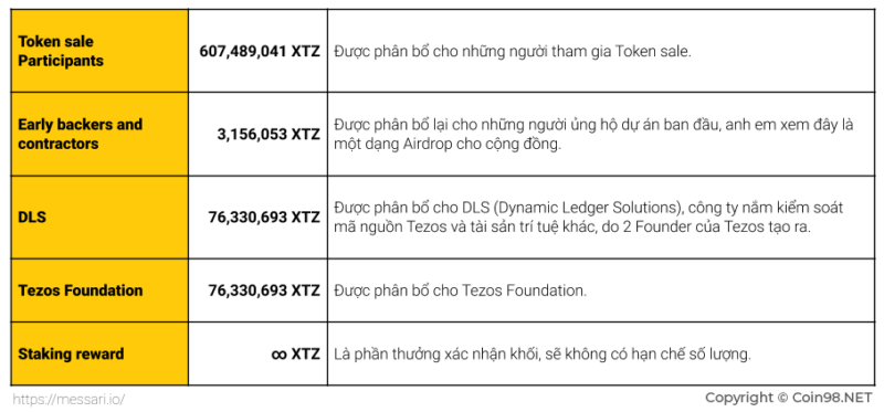 - Tổng Token bán được trong ICO: 607,489,041 XTZ