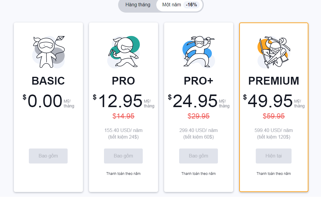 Trong số này, tài khoản Premium Account sẽ là tài khoản có mức phí cao nhất 49.95 USD/tháng và 599.40/ năm.