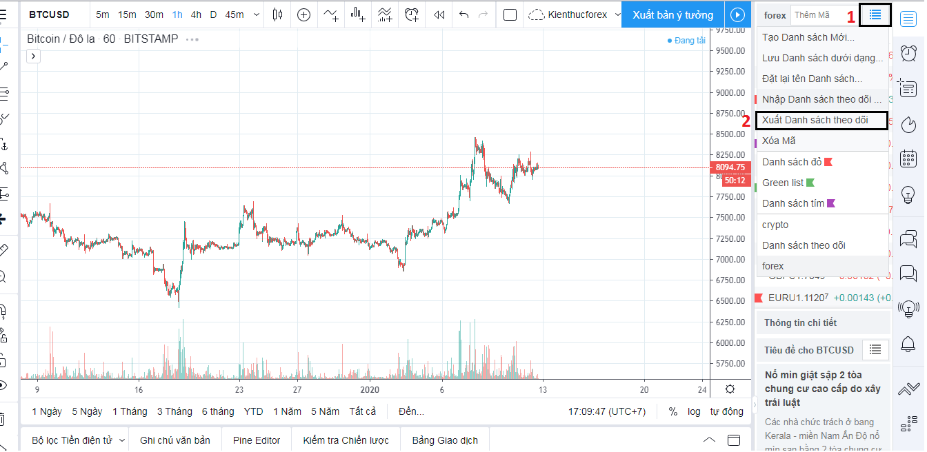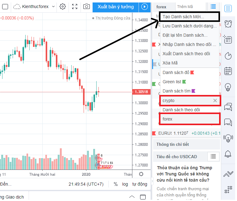 Để tiết kiệm bạn có thể “xuất các danh sách theo dõi”. Sau này nếu có chuyển qua tài khoản mới, bạn sẽ nhập danh sách này vào. TradingView sẽ tự động tích hợp toàn bộ các tiền tệ bạn có trong danh sách, mà không cần phải thủ công hóa nhập từng cái một!