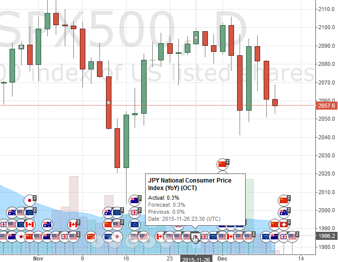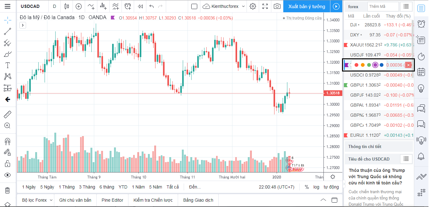 Thông tin sự kiện là các sự kiện diễn ra với cặp tiền tệ mà bạn đang phân tích, là những ô tròn nằm bên góc phải trong mục biểu đồ chính. Phần này khá khó chịu vì chúng hay bị lẫn vào biểu đồ khiến cho chart trở nên khó nhìn hơn:
