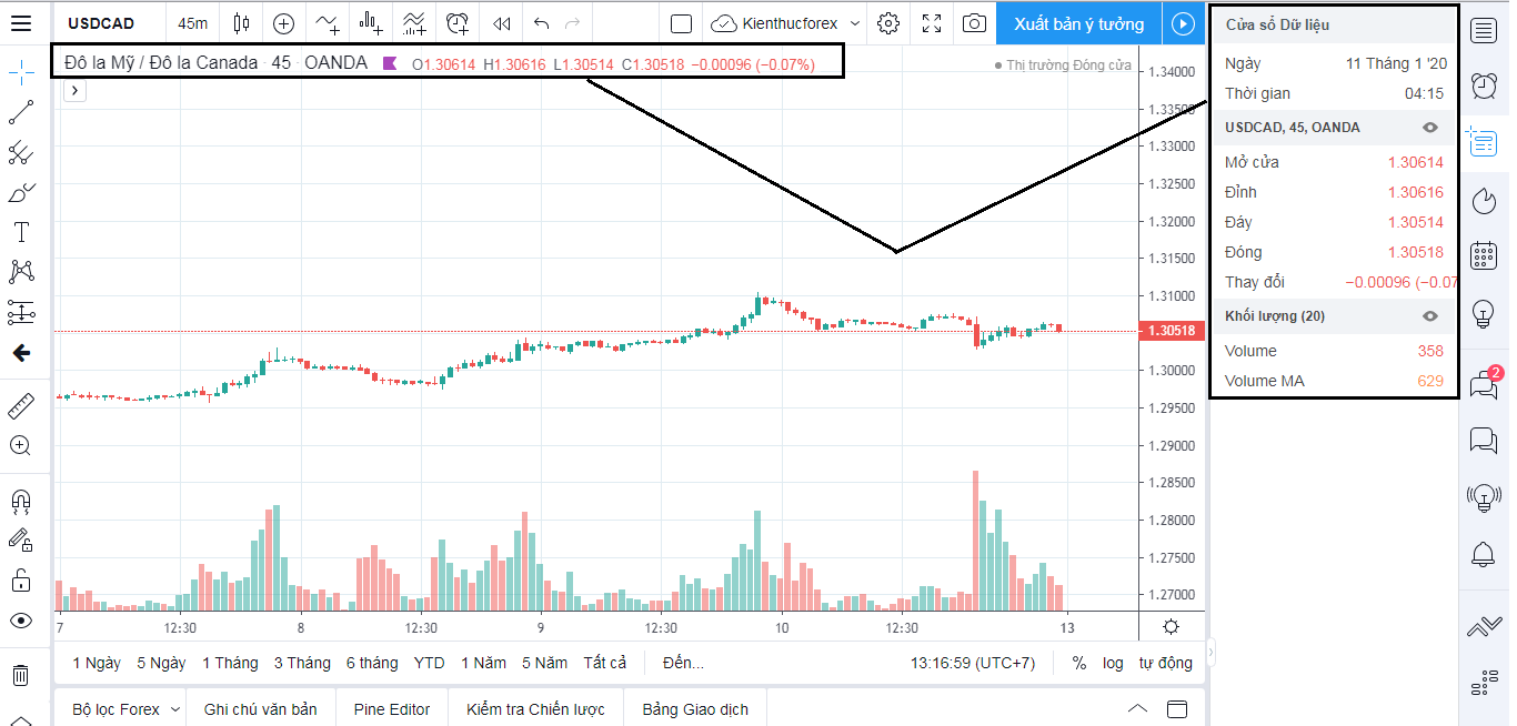 Mặc dù tính năng này cũng có trong phần mềm MT4, nhưng giao diện trên TradingView dễ xem và thân thiện hơn rất nhiều.