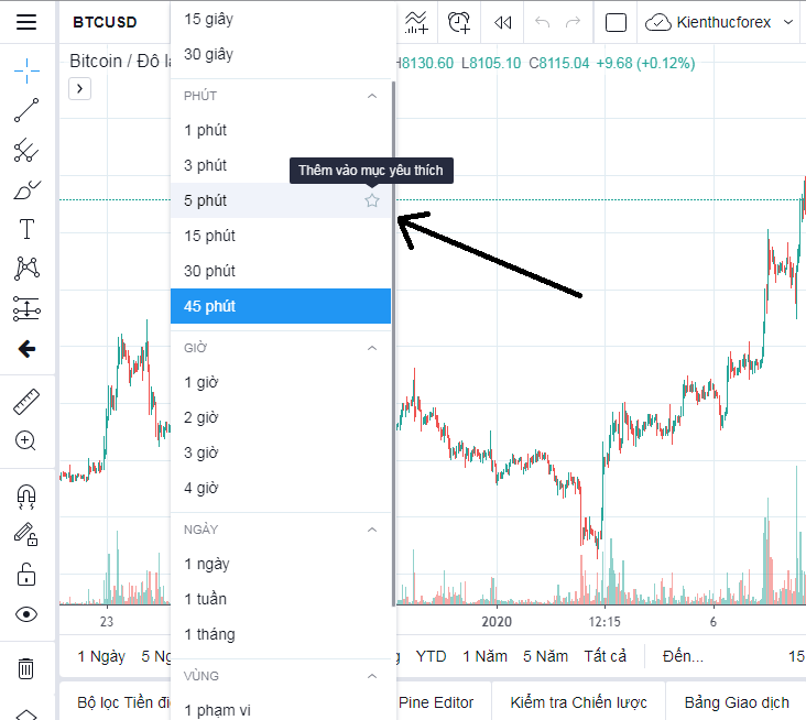 Bạn chỉ cần mở phần khung thời gian ra, sau đó tìm đến thời gian bạn hay sử dụng để phân tích, nhìn sang bên trái sẽ thấy dòng “thêm vào mục yêu thích”, nhấn vào đó như hình phía trên.