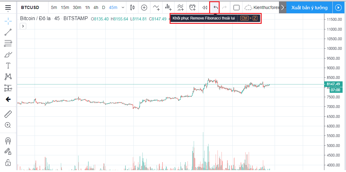 Nếu bạn nhấn vào nút này chúng sẽ quay trở lại thời điểm trước khi bạn kẻ vẽ nó gần giống với phím tắt Ctrl+Z vậy. Tính năng này hơi khác so với tính năng bỏ đi các công cụ vẽ hay bỏ đi các chỉ báo, được giới thiệu tại các phần trước.