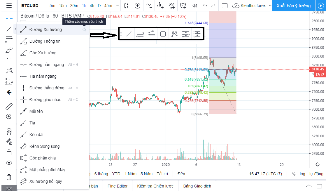 Khi phân tích giá bạn sẽ thường phải kết hợp đường xu hướng với hàng loạt các công cụ chỉ báo như Fibonacci hay sóng Elliott hay các mô hình được TradingView tích hợp sẵn.