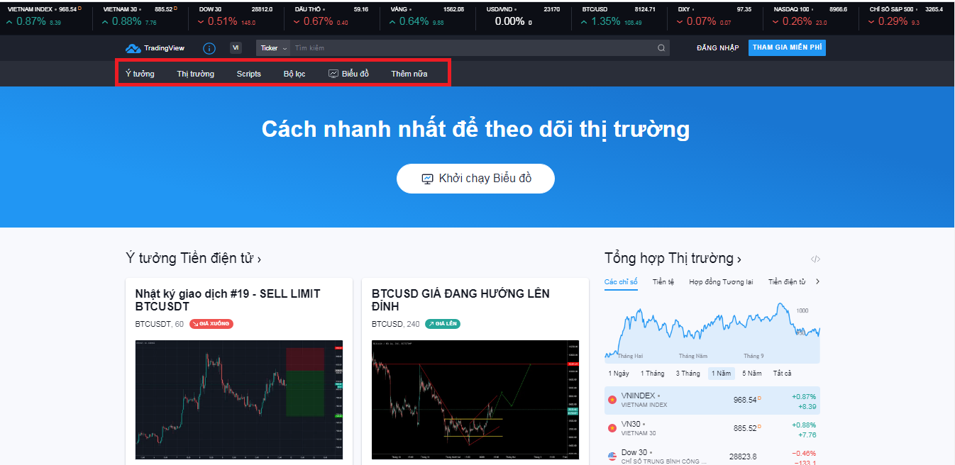 Đây chính là trang chủ TradingView cung cấp cho bạn vô số tính năng bao gồm: