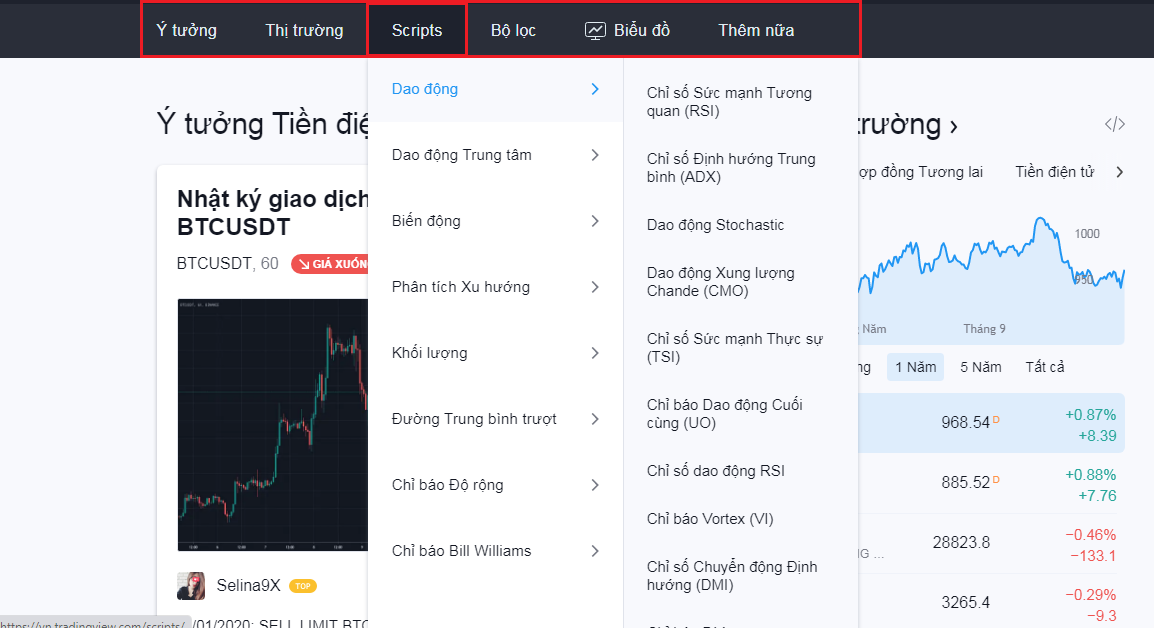 Tại phần dưới, TradingView chia danh mục ý tưởng theo từng sản phẩm để trader tiện theo dõi như: