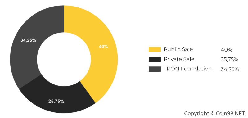 TRON Foundation quyết định bán ra một lượng token khoảng 65,75% tổng cung của TRX qua 2 vòng Private Sale và Public ICO.